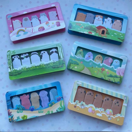 Chaque sticky bloc présente de petits animaux trop mignons — chats, pandas, capybaras et autres compagnons poilus — prêts à garder tes pensées bien en vue.